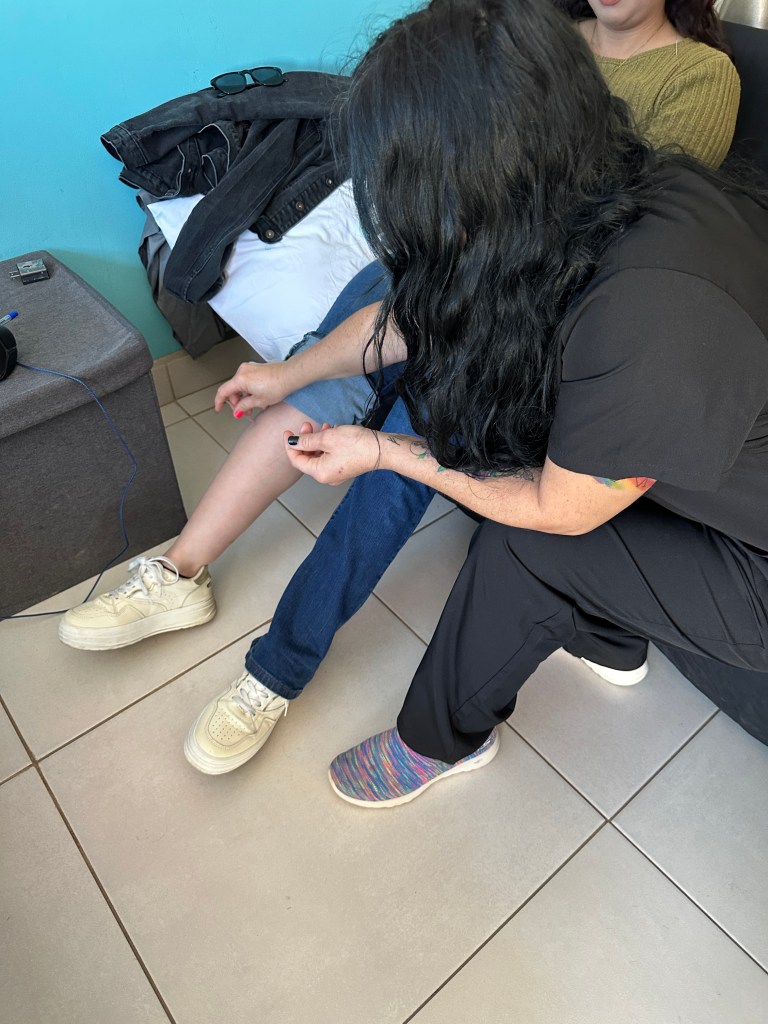 Recibes tu sesión en una silla o sofá, con agujas solo en puntos específicos.